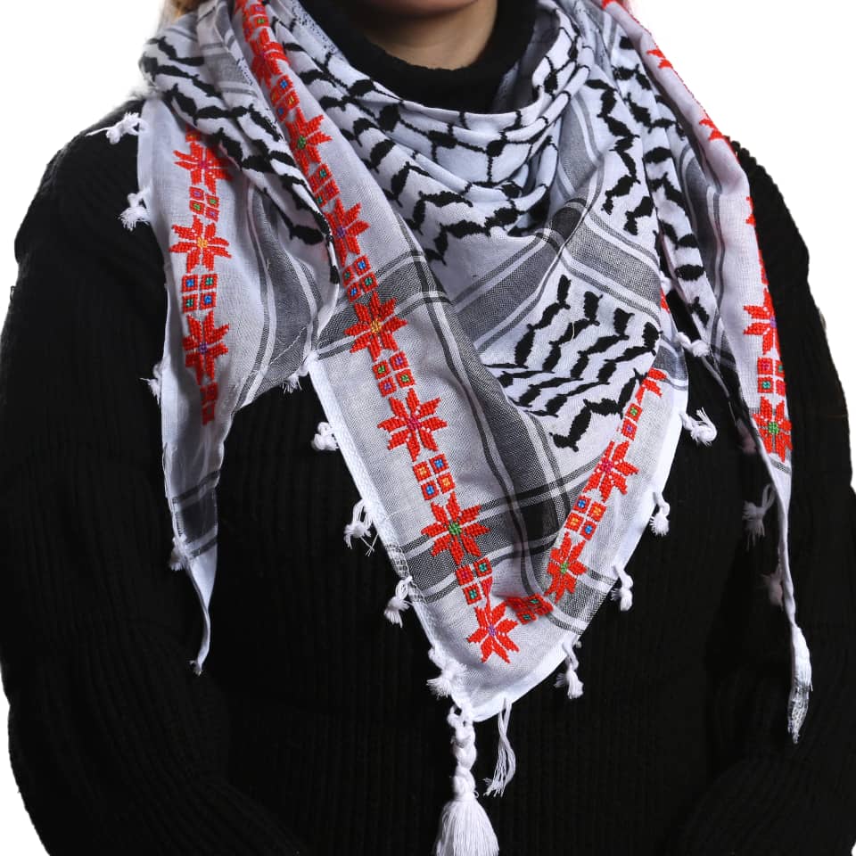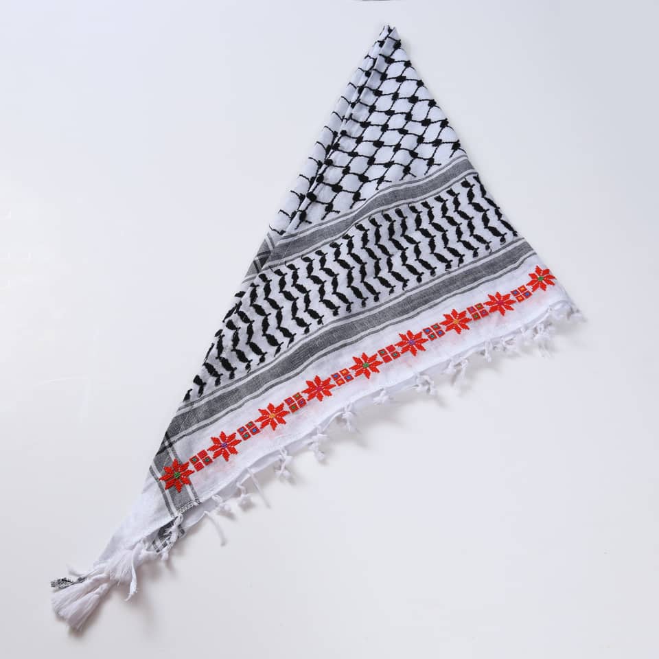 Moon of Bethlehem Motif Handmade Keffiyeh Neck Scarf (Lightweight)